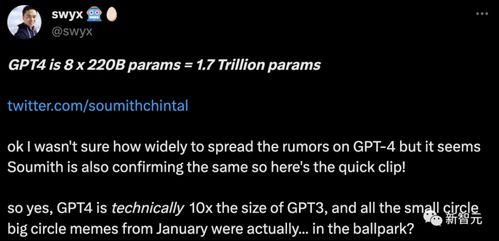最近互联网上可是炸开了锅,大家都在热议一个神秘的新星——GPT-4的参数最新爆料!这个话题可是科技圈的热门话题,咱们一起来探个究竟吧!